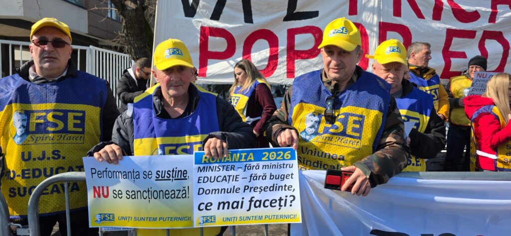Peste 500 de persoane au participat miercuri, 25 februarie, la mitingul organizat la Palatul Cotroceni, acțiune menită să readucă în atenția autorităților nemulțumirile din sistemul de învățămînt, în special în ceea ce privește aplicarea Ordonanței 141. Potrivit porofesorului Traian Pădureț, liderul Pro Educația Suceava, din județul nostru au fost prezenți aproximativ opt-nouă reprezentanți sindicali. A precizat acesta, în cadrul unei intervenții telefonice la Radio Top: ”De la noi, de la ProEducația, am fost patru persoane. De la domnul Giani Leonte, de la Alianța Sindicatelor din Învățămînt Suceava, vreo patru-cinci erau”.