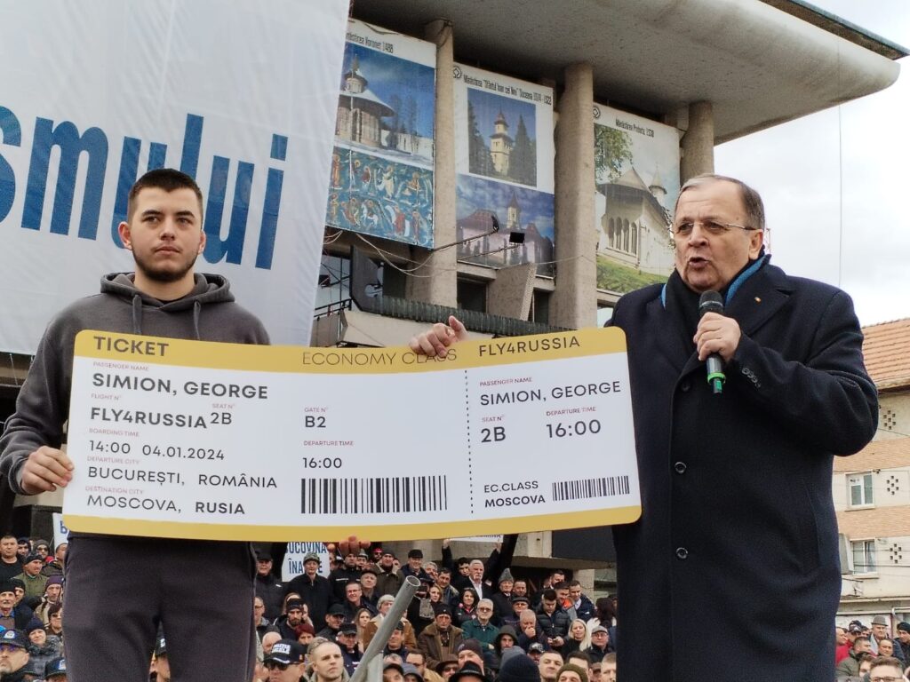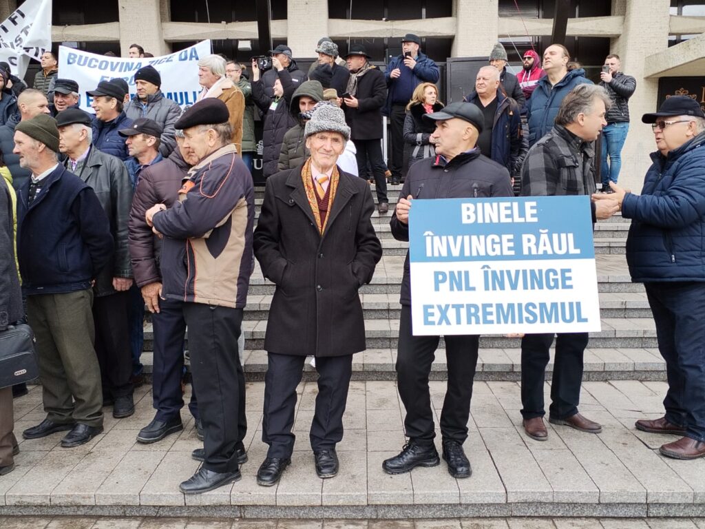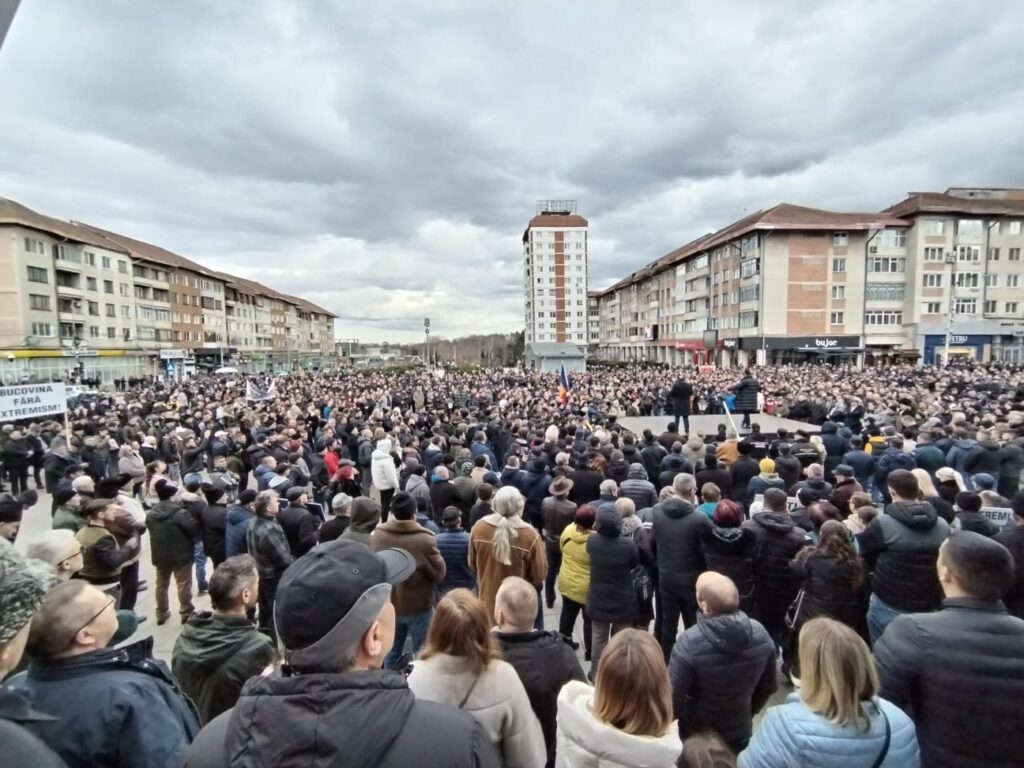 Aproximativ 3.000 de oameni, mulți dintre aceștia activiști PNL din tot județul, au participat la mitingul împotriva extremismului organizat de liderul PNL Suceava, Gheorghe Flutur, duminică, 4 februarie, începînd cu ora 14.00. Estimarea a fost făcută de un membru al forțelor de ordine. Mitingul a durat aproximativ o oră și jumătate. O persoană din public care s-a contrat verbal cu forțele de ordine și cu cîțiva dintre manifestanți a fost ridicată de jandarmi și condusă în afara zonei în care se aflau cei prezenți la evenimentul care a avut loc pe esplanada Casei de Cultură Suceava. Primul care a luat cuvîntul de pe scenă a fost Gheorghe Flutur, lîngă care a urcat la un moment dat un tînăr care avea un bilet de avion uriaș, în genul premiilor oferite cîștigătorilor concursurilor de talente televizate. Biletul de avion cu direcția Moscova era pe numele liderului AUR, George Simion, cel care de curînd a organizat la Suceava două mitinguri anti-Flutur.