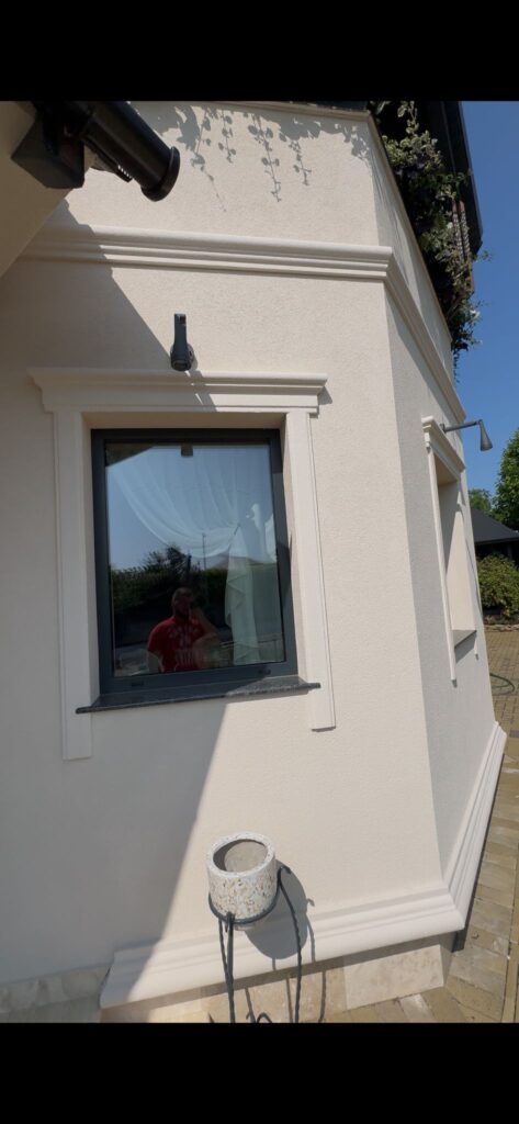 A continuat Bogdan Plugariu: ”În mare parte facem pentru săli de nunți, tavane, cornișe, încadramente, dar în special la case. Se poate folosi și la interior exact ce facem noi pentru exterior, dar polistirenul crud – un polistiren dens, vorbim de EPS-200, e cel mai dens expandat”.