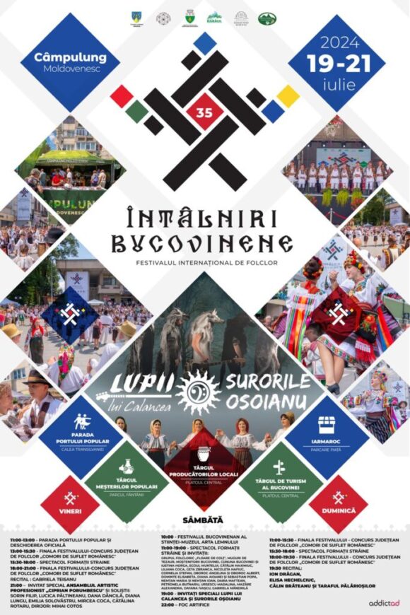 300 de artiști din cinci țări vor participa în perioada 19-21 iulie, la Cîmpulung Moldovenesc, la cea de-a XXXV-a ediție a Festivalului Internațional de Folclor ”Întîlniri bucovinene”. Referitor la acest eveniment, primarul Mihăiță Negură a declarat în cadrul unei intervenții telefonice la Radio Top: ”Invitații speciali din acest an, pentru că am ascultat și opinia publică, sînt formația Lupii lui Calancea și surorile Osoianu, care vor urca pe scenă sîmbătă, la ora 19.00. Acest interesant și așteptat festival a devenit un punct de referință, cum știm cu toții, în peisajul cultural cîmpulungean. În acest festival sînt incluse momente artistice de excepție, expoziția meșterilor populari, degustări de produse tradiționale și multe alte surprize care vor transforma acest eveniment într-o experiență culturală completă”.