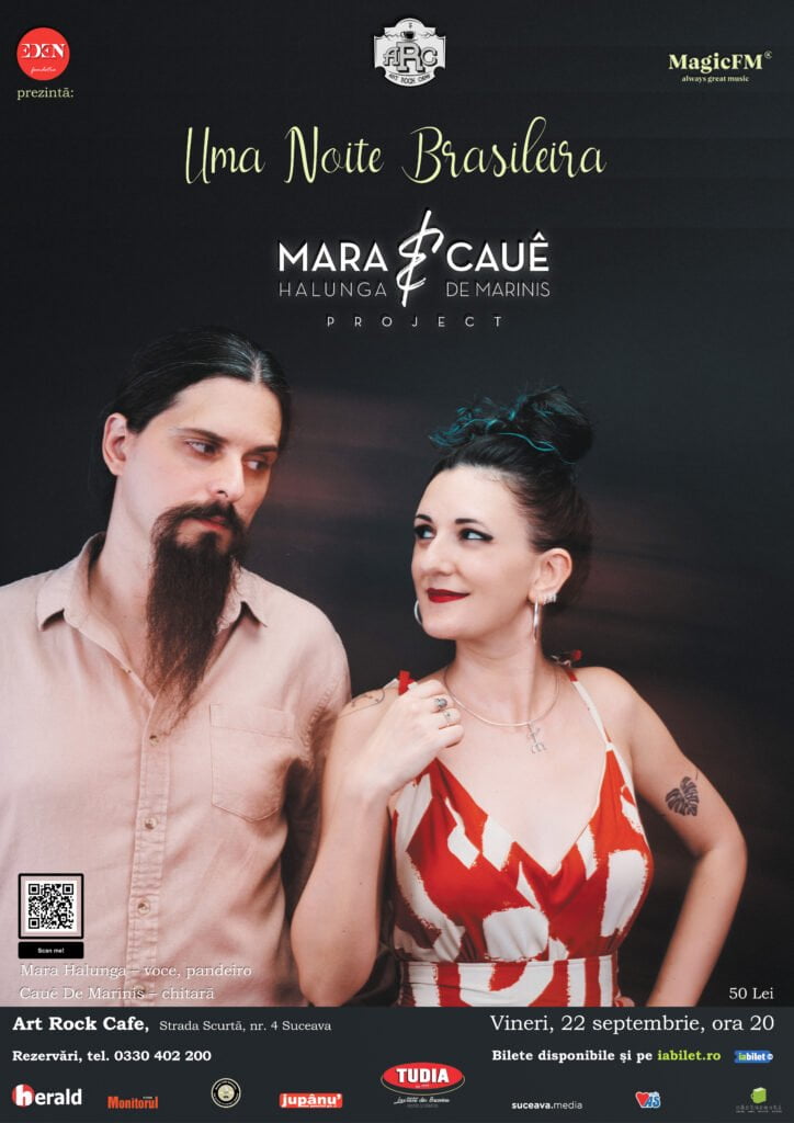 Pe 22 septembrie, începînd cu ora 20.00, clubul Art Rock Cafe din Suceava va găzdui un concert de muzică braziliană cu Mara Halunga&Cauê De Marinis. Evenimentul este organizat de Eden Fundația, iar costul unui bilet este de 50 de lei. Conform Eden Fundația, în cei cinci ani de existență, duo-ul format din Mara Halunga și Cauê De Marinis a participat la mai multe festivaluri din România. De asemenea, duo-ul a susținut nenumărate concerte în orașe precum São Paulo, Roma, Stockholm și București și a colaborat cu mai mulți muzicieni români și brazilieni.