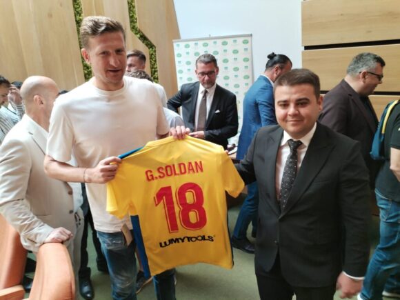 Astăzi, cînd a împlinit 34 de ani, Gheorghe Șoldan, președintele Consiliului Județean Suceava a primit din partea fostului internațional Dorin Goian un tricou personalizat, un tricou cu numărul 18 pe care scrie ”G. Șoldan”. Tricoul i-a fost oferit domnului Șoldan la finalul conferinței de presă comune cu reprezentantul companiei aeriene Wizz Air, care a avut loc în Sala ”Unirii” a Consiliului Județean. Dorin Goian l-a invitat pe Gheorghe Șoldan la meciul său de retragere, care va avea loc marți, 24 iunie, începînd cu ora 18.00, pe Stadionul ”Areni” din Suceava. De la ora 20.00 va fi un concert susținut de trupa Zdob și Zdub.