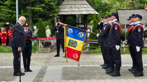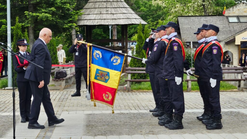 Într-un ceremonial care a avut loc în dimineața zilei de sîmbătă, 18 mai, pe platoul Cetății de Scaun a Sucevei, Drapelul de Luptă al Inspectoratului pentru Situații de Urgență ”Bucovina” a fost decorat. Decretul de acordare a Ordinului ”Bărbăție și credință în grad de Cavaler” a fost semnat anul trecut pe 13 septembrie, de Ziua Pompierilor, de către președintele României, și a fost înmînat, astăzi, cu ocazia împlinirii a 100 de ani de la înființarea primei unități de pompieri la Suceava. Ordinul de acordare a distincției a fost citit de prim-adjunctul Inspectoratului General pentru Situații de Urgență, generalul Constantin Florea. Distincția a fost înmînată de șeful Departamentului pentru Situații de Urgență, Raed Arafat, care le-a spus pompierilor suceveni că aceasta reprezintă ”o recunoaștere pentru meritele acestei unități și a modului cum a servit populația. Ați primit decorația care recunoaște la cele mai înalt nivel al statului român meritele dumnevoastră”. Domnul Arafat i-a felicita pe angajații ISU Suceava pentru cum au acționat în pandemie și după izbucnirea crizei refugiaților, spunînd că aceștia și-au făcut bine treaba, servind nu doar România, ci și vecinii României. Raed Arafat a mai spus că urmează noi provocări, cum ar fi schimbările climatice, și i-a îndemnat pe pompieri să acționeze în continuare cu profesionalism.