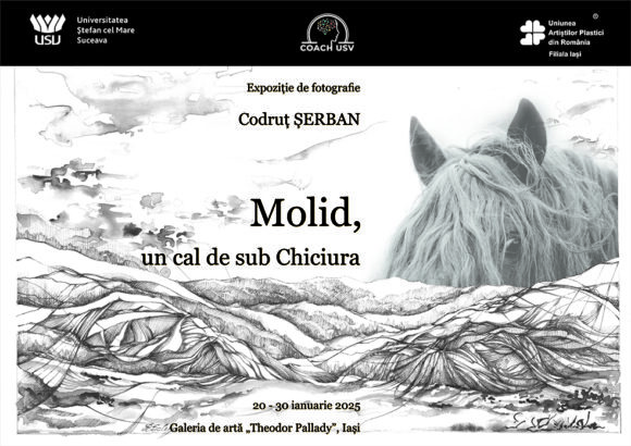 Universitatea „Ștefan cel Mare” din Suceava, Centrul de orientare, asociere și consiliere în cariera de cercetător – COACH USV și Uniunea Artiștilor Plastici din România Filiala Iași anunță că a fost deschisă expoziția de fotografie „Molid, un cal de sub Chiciura”. Lucrările semnat de lectorul univ. dr. Codruț Șerban, de la USV, sînt expuse la Galeria „Theodor Pallady” din Iași pînă pe 30 ianuarie.