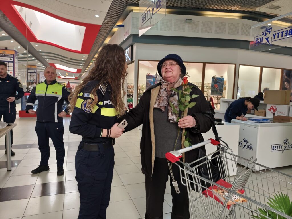 Cu sprijinul Asociației Internaționale a Polițiștilor IPA – Regiunea 1 Suceava, participantele la eveniment au primit flori și mărțișoare.