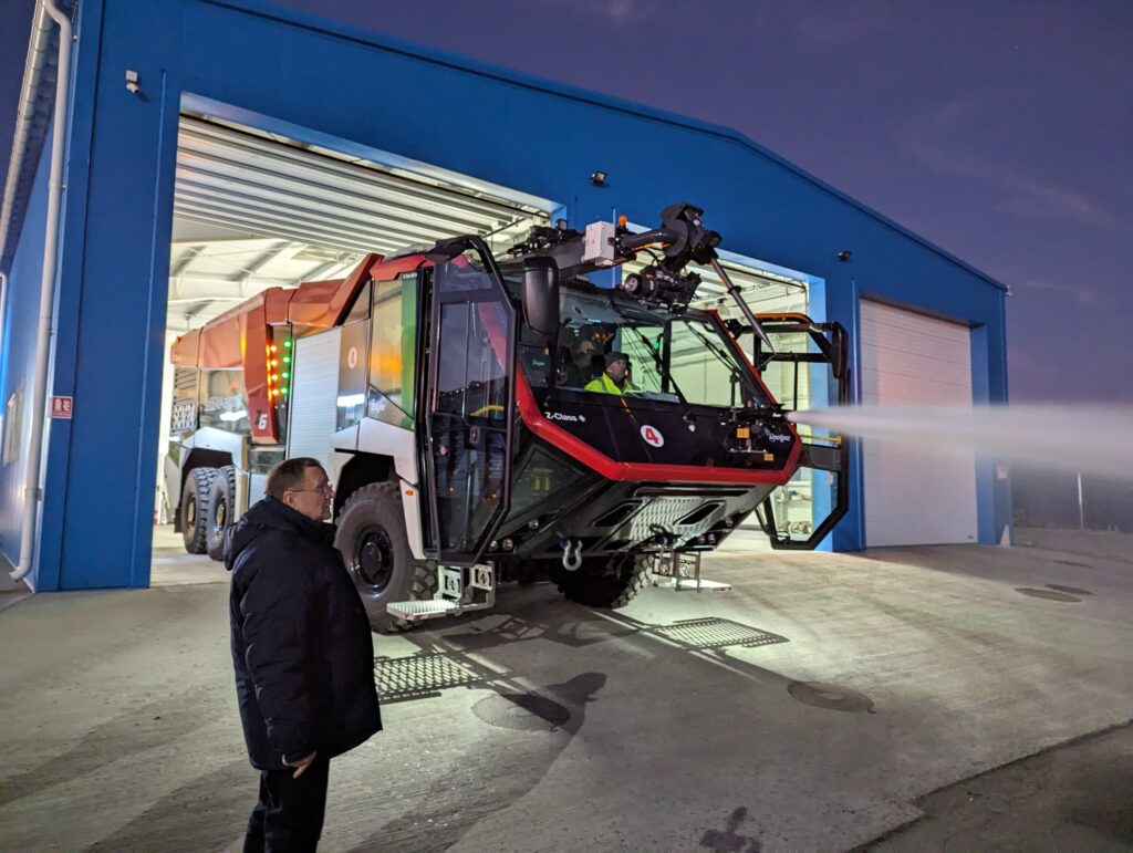 Însoțit de directorul Ioan Măriuța, președintele Consiliului Județean Suceava, Gheorghe Flutur, a prezentat noile investiții făcute la Aeroportul Internațional ”Ștefan cel Mare”. Domnul Flutur a spus că s-au construit un gard de protecție lung de 6,4 kilometri și o clădire de 600 metri pătrați cu garaje pentru mașini de intervenție. S-au mai achiziționat aparatură de citire sisteme de alarmă, un utilaj modern de deszăpezire, un utilaj de intervenție în caz de incendii și un grup electrogen care să asigure alimentarea cu energie a instalațiilor pentru aducerea avioanelor la sol. Domnul Flutur a amintit că s-a dat în funcțiune terminalul 2 și a adăugat că se demolează o serie de clădiri pentru a amenaja terminalul 3 și terminalul cargo, și pentru extinderea parcării aeroportului. Aeroportul se află în subordinea Consiliului Județean.