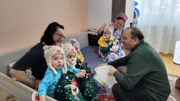 Gheorghe Flutur, cu daruri, la o familie cu cvadrupleți din Sfîntu Ilie, care în martie vor împlini 2 ani