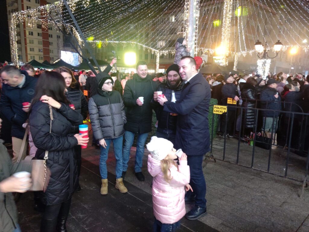 La Miezul Nopții, pe scenă a urcat viceprimarul Sucevei Lucian Harșovschi, care, ajutat de mii de suceveni, s-a ocupat de numărătoarea inversă. După aceea, vicele, care a venit însoțit de soție și de copii, a împărțit cîteva pahare din plastic în care a turnat în prealabil vin spumos. Au băut și copiii, însă, evident, ”spumosul copiilor”.
