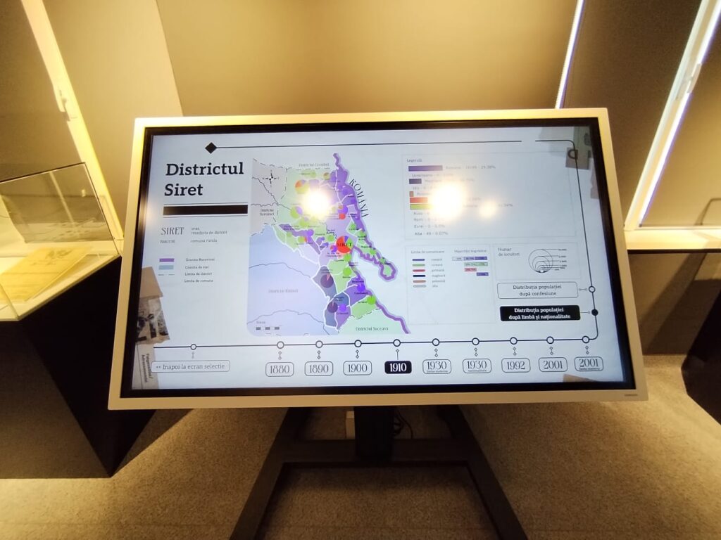 Expoziția permanentă a Muzeului de Istorie Siret îmbină afișajul clasic cu cel modern, cu tehnologii vizuale, inclusiv inteligență artificială generativă. Aceasta cuprinde preistoria zonei Siret, genealogia primilor domni ai Moldovei, atunci cînd capitala era la Siret, costumul de femeie descoperit în timpul cercetărilor arheologice de la Biserica Nașterea Sfîntului Ioan Botezătorul, Siretul în epoca modernă, o reconstituire a unui interior de locuință din secolul XIX, o prezentare inedită a personalităților din Siret, cartografia austriaca a zonei și secțiunea dedicată evreilor în cadrul Memorialului Holocaustului din Bucovina. În acest sector se remarcă si o încăpere cu o expunere imersivă care simulează deportarea evreilor cu trenurile, în care vizitatorii simt inclusiv mișcarea vagoanelor. La exterior, pe zidurile împrejmuitoare ale muzeului sînt trecute numele evreilor bucovineni, victime ale Holocaustului.