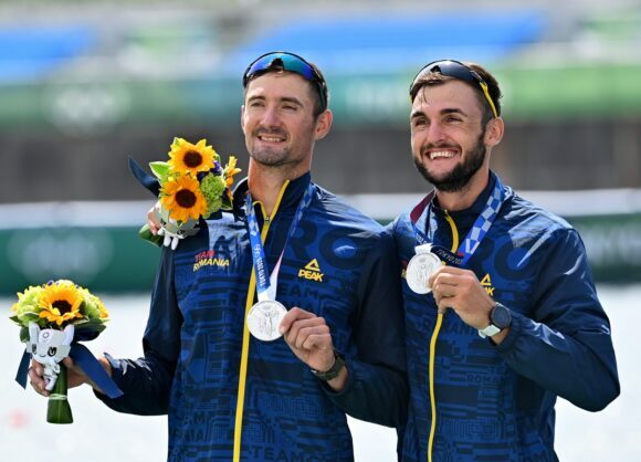 (210729) -- TOKYO, July 29, 2021 (Xinhua) -- Marius Cozmiuc (L) and Ciprian Tudosa of Romania attend the awarding ceremony of the rowing Men's Pair Final at the Tokyo 2020 Olympic Games in Tokyo, Japan, on July 29, 2021.,Image: 624007647, License: Rights-managed, Restrictions: , Model Release: no, Credit line: Profimedia