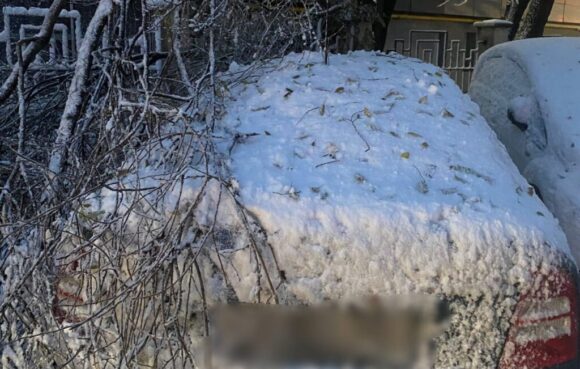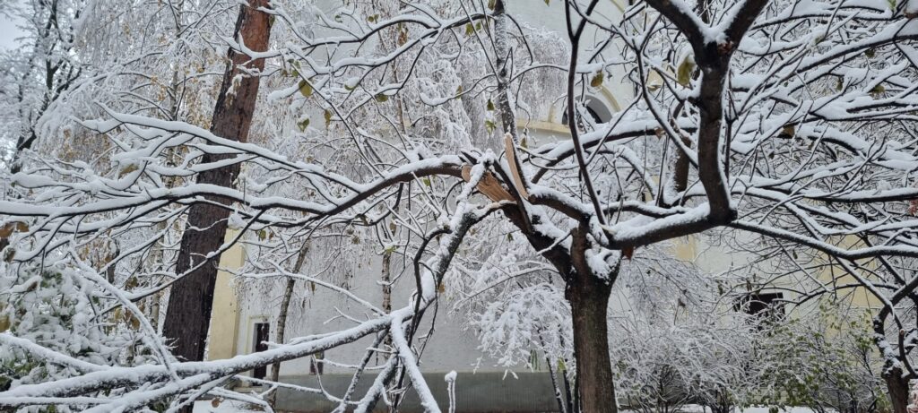 Și în Parcul Central al Sucevei s-au rupt bucăți de copaci, sub greutatea zăpezii.