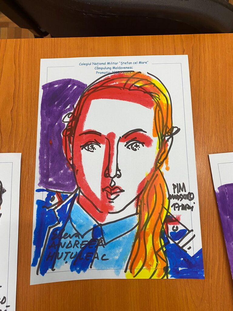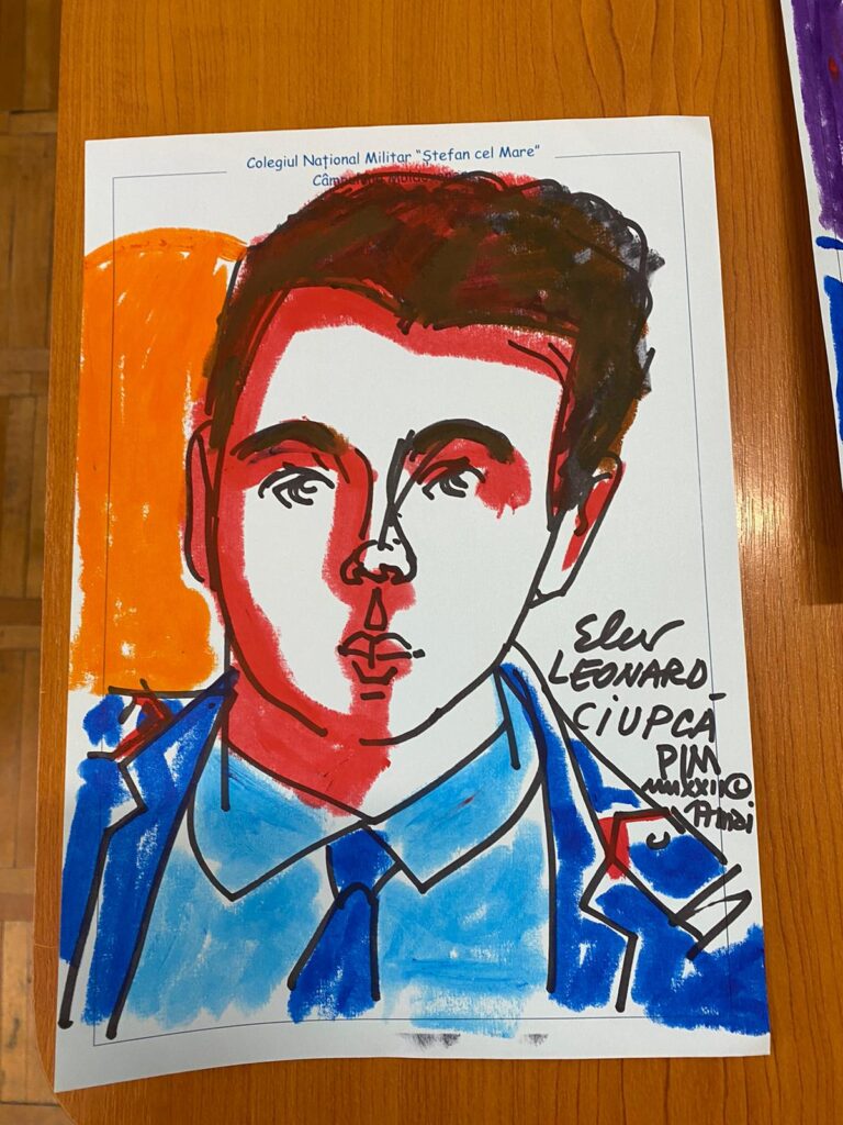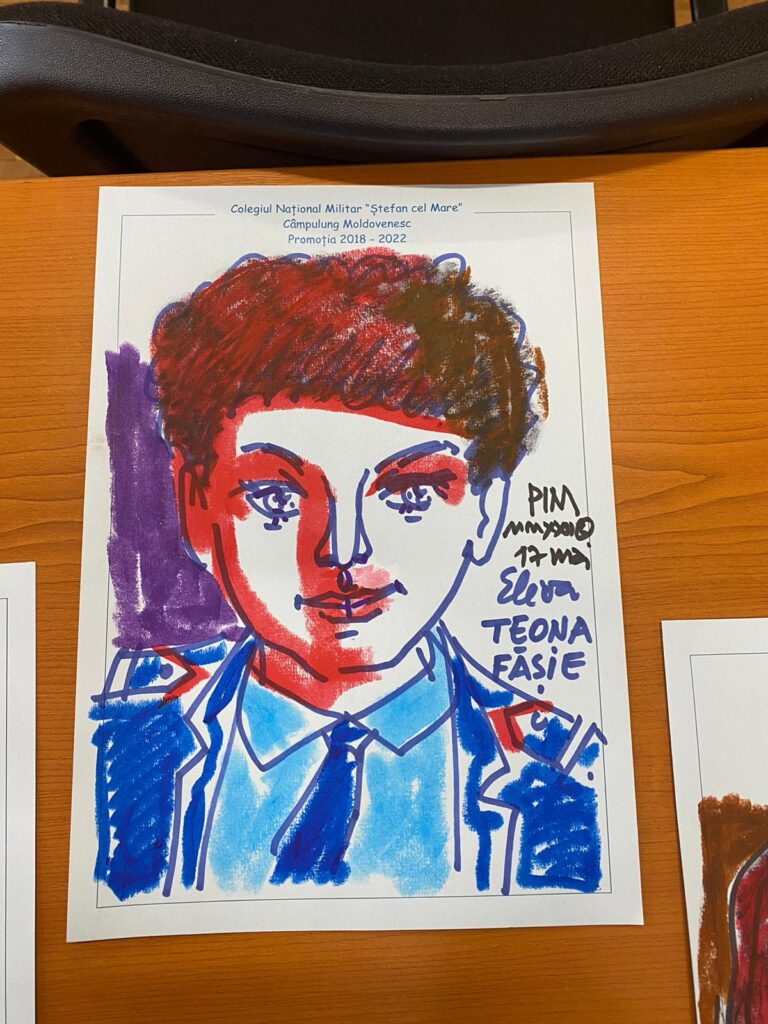 Mihai Pînzaru-PIM, 5 ore la Colegiul Militar ”Ștefan cel Mare”: 30 de portrete pentru elevi și alte 5 pentru profesori