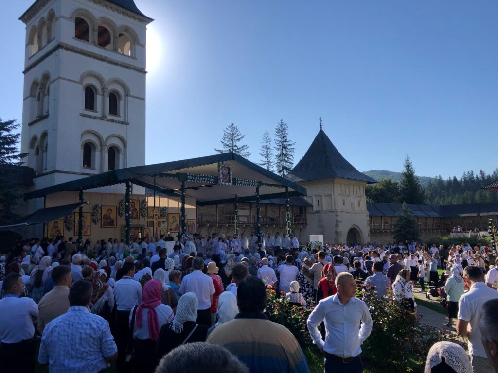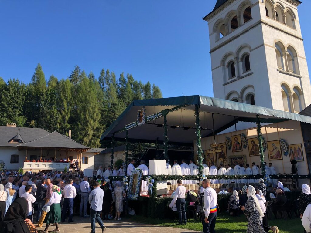 Mii de credincioși de toate vîrstele, majoritatea îmbrăcați în costume populare, au asistat la slujba ținută, astăzi, de Sfînta Maria, în curtea Mănăstirii Putna. La Sfînta Liturghie arhierească la praznicul Adormirii Maicii Domnului, hramul Mănăstirii Putna, au slujit Înaltpreasfințitul Părinte Calinic, Arhiepiscop al Sucevei și Rădăuților, Preasfințitul Părinte Damaschin Dorneanul, Episcop-Vicar al Arhiepiscopiei Sucevei și Rădăuților, și Preasfințitul Părinte Atanasie de Bogdania, Arhiereu-Vicar al Episcopiei Ortodoxe Române a Italiei.