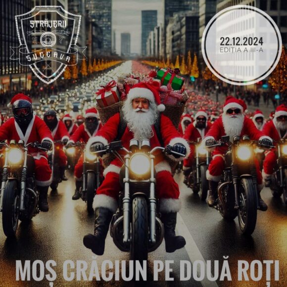 Pentru al treilea an consecutiv, Străjerii M.F. Suceava îi invită pe toți motocicliștii la evenimentul ”Moș Crăciun pe două roți”, ajuns la cea de-a III-a ediție. Într-un comunicat transmis de Cristian Timoficiuc, administratorul Tim Group, care, evident, este un pasionat motociclist, se arată că parada va pleca pe 22 decembrie, la ora 12.30, din fața firmei sale din Ițcani pe traseul Burdujeni-Centru-Obcini-George Enescu-Mărășești. La ora 13.30, motocicliștii vor împărți cadouri pe esplanada din fața Casei Culturii. În mesajul domnului Timoficiuc se mai arată: ”Așteptăm cu drag cât mai mulți Moși pe două roți, costumul de Moș Crăciun fiind obligatoriu”.