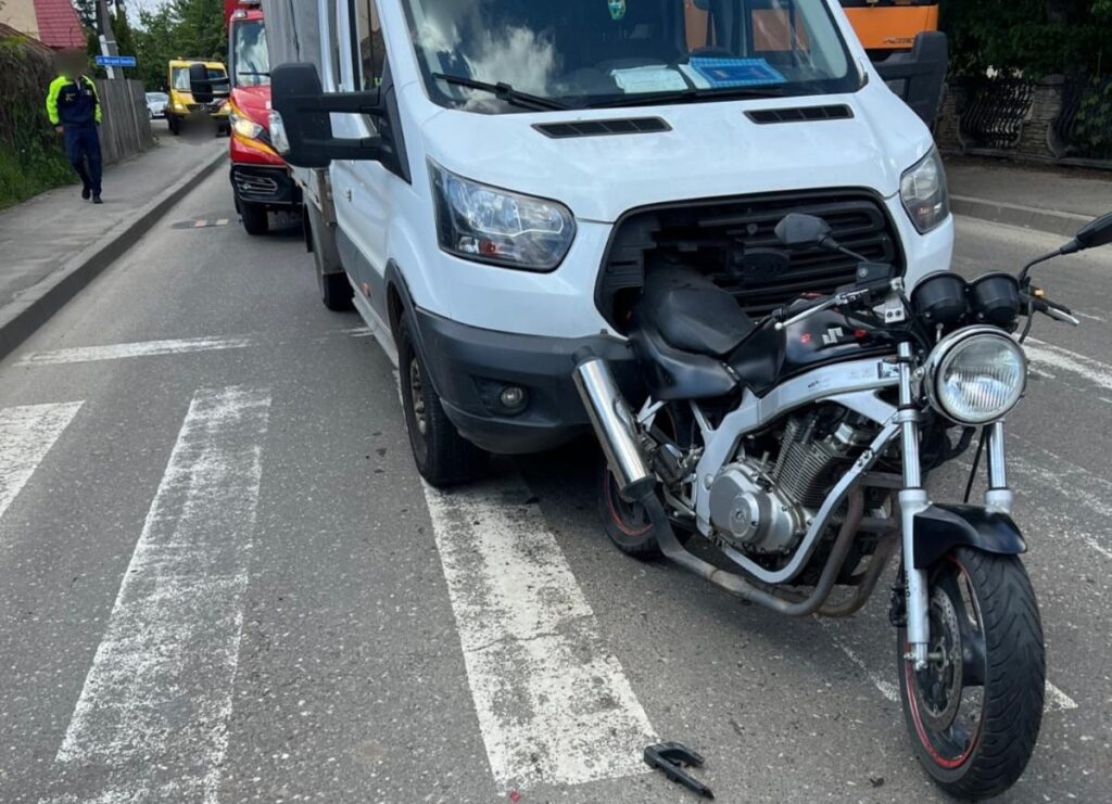 Un microbuz a intrat puternic în spatele motocicletei, tînăra de 24 de ani fiind proiectată pe carosabil.