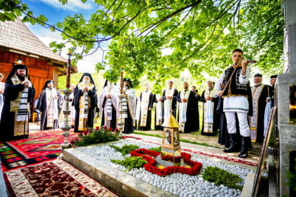 Parastas la mormîntul Înaltului Pimen, cu tineri care au cîntat ”Balada” lui Ciprian Porumbescu