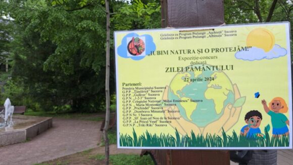 Peste 170 de desene au dat culoare Parcului Central al Sucevei, luni, 22 aprilie, cu ocazia Zilei Mondiale a Pământului. Inițiatoarele expoziției-concurs „Iubim natura și o protejăm”, grădinițele cu program prelungit „Albinuța” și „Așchiuță” din Suceava, au reunit la această activitate 13 grădinițe din municipiul reședință de județ: „Țăndărică”, „Gulliver”, „1-2-3”, Grădinița Colegiului Național „Mihai Eminescu”, „Maria Montessori”, „Prichindel”, „Dumbrava Minunată”, Grădinița Nr.5, „Sf. Ioan cel Nou de la Suceava”, „La Piticul Vesel” și „Triki Riki”.