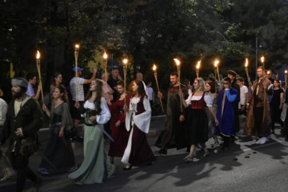 Peste 500 de domnițe și cavaleri de la trupele participante la Festivalul de Artă Medievală ”Ștefan cel Mare” vor participa în această seară la parada cu făclii de pe bulevardul principal al Sucevei. La aceștia se vor adăuga domnițe și caveleri din zonă, care și-au confecționat singuri ținutele ori le-au împrumutat de la Muzeul Național al Bucovinei. Parada de astăzi va începe la ora 20.30 din cartierul Obcini și va continua pe bulevardul principal pînă la Cetatea de Scaun.