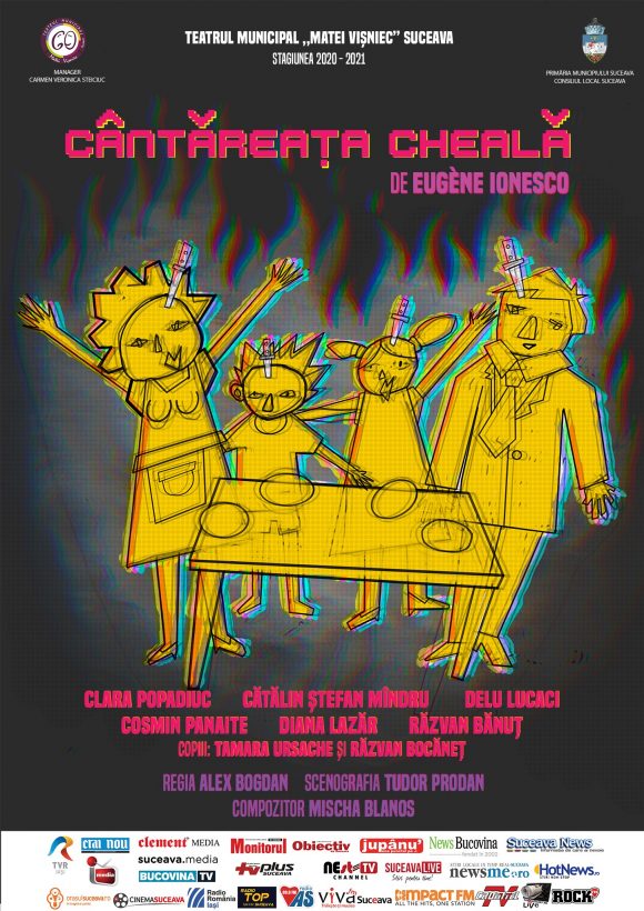 O producție a Teatrului Municipal „Matei Vișniec” din Suceava este selectată să participe la cea de-a XXXI-a ediție a Festivalului Național de Teatru – FNT, care va avea loc între 6 și 14 noiembrie, în format online, din cauza restricțiilor impuse de pandemie. Este vorba despre spectacolul „Cîntăreața cheală” de Eugène Ionesco, în regia lui Alex Bogdan. Criticii de teatru Cristina Rusiecki, Oana Cristea Grigorescu și Claudiu Groza au selectat 38 de spectacole din țară pentru FNT 31. Piesa „Cîntăreața Cheală” se va juca live pe scena teatrului sucevean în aceeași perioadă în care va fi difuzată online în cadrul festivalului. Accesul va fi gratuit. Din distribuție fac parte Cătălin Ștefan Mîndru, Clara Popadiuc, Delu Lucaci, Cosmin Panaite, Diana Lazăr și Răzvan Bănuț.