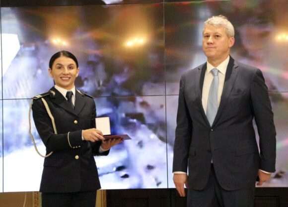 O tînără polițistă de la Sectorului Poliției de Frontieră Siret a fost distinsă cu Emblema de Onoare a Ministerului Afacerilor Interne de către ministrul de interne, Cătălin Predoiu, ”pentru profesionalismul și vigilența de care a dat dovadă pe timpul executării atribuțiilor de serviciu”.