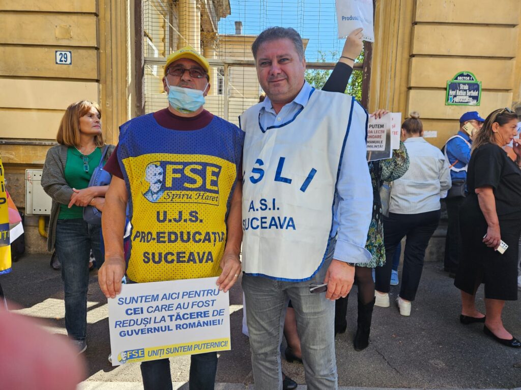 Liderul Pro Educația Suceava, Traian Pădureț, și liderul ASIS, Giani Leonte, au participat la mitingul tăcut care a avut loc la Ministerul Educației joi, 18 septembrie. Cu o zi înainte, domnul Pădureț a participat, tot la București, la o întîlnire a liderilor celor două mari sindicate din educație.