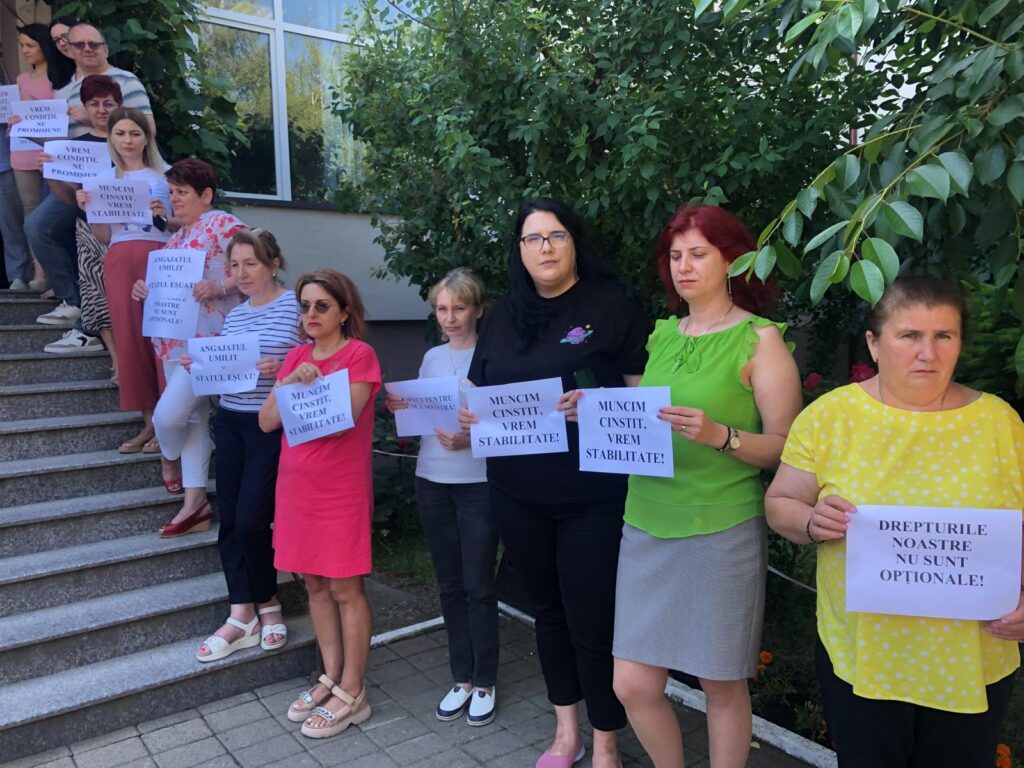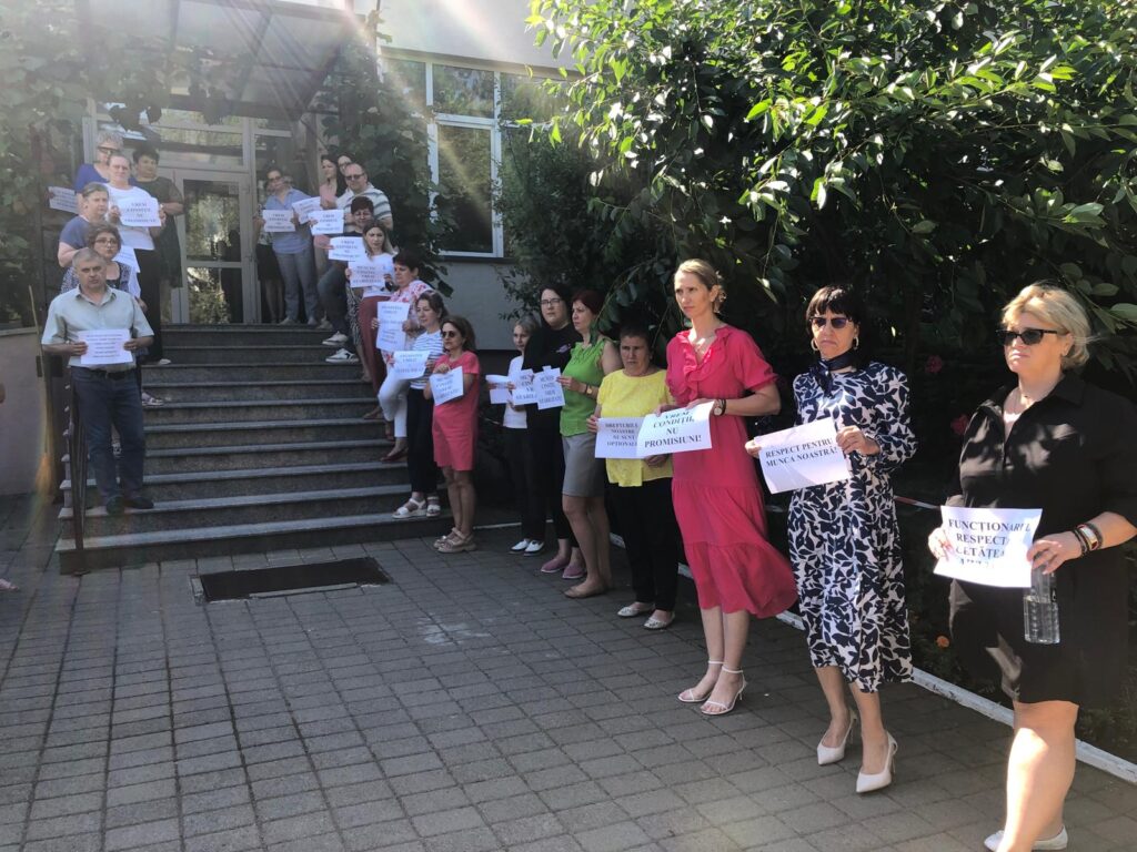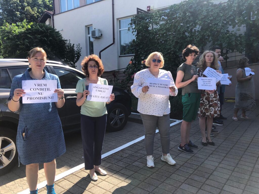 Pe unele dintre hîrtiile format A4 pe care le-au ținut în mînă scria ”Vrem condiții, nu promisiuni!”, ”Angajatul umilit = statul eșuat!” și ”Respect pentru munca noastră!”.