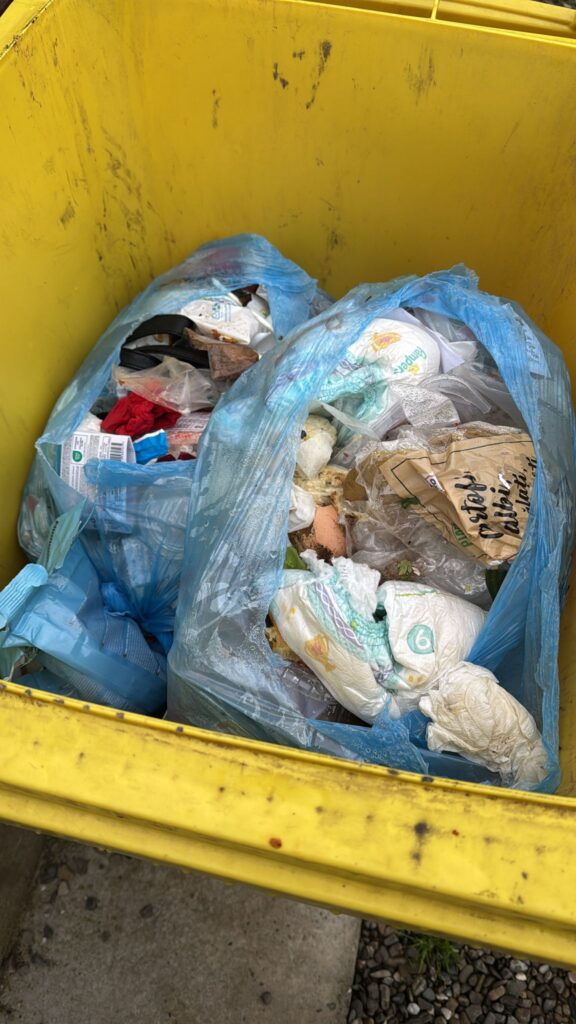 Imaginile din teren trimise de operatorii de salubrizare arată situații în care în pubele ajung haine, iarbă și resturi de la construcții. Mai sînt lăsați și bani pe marginea pubelelor, pentru a convinge echipele de salubrizare să ridice deșeurile în ciuda neregulilor.