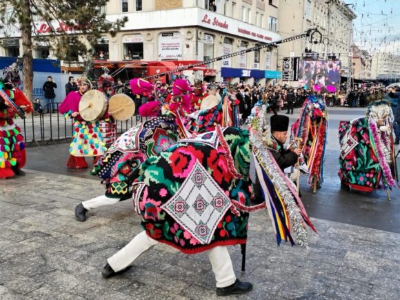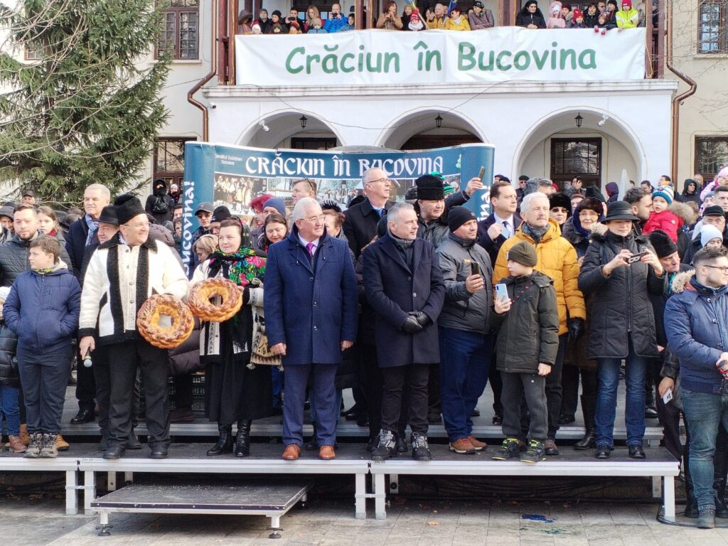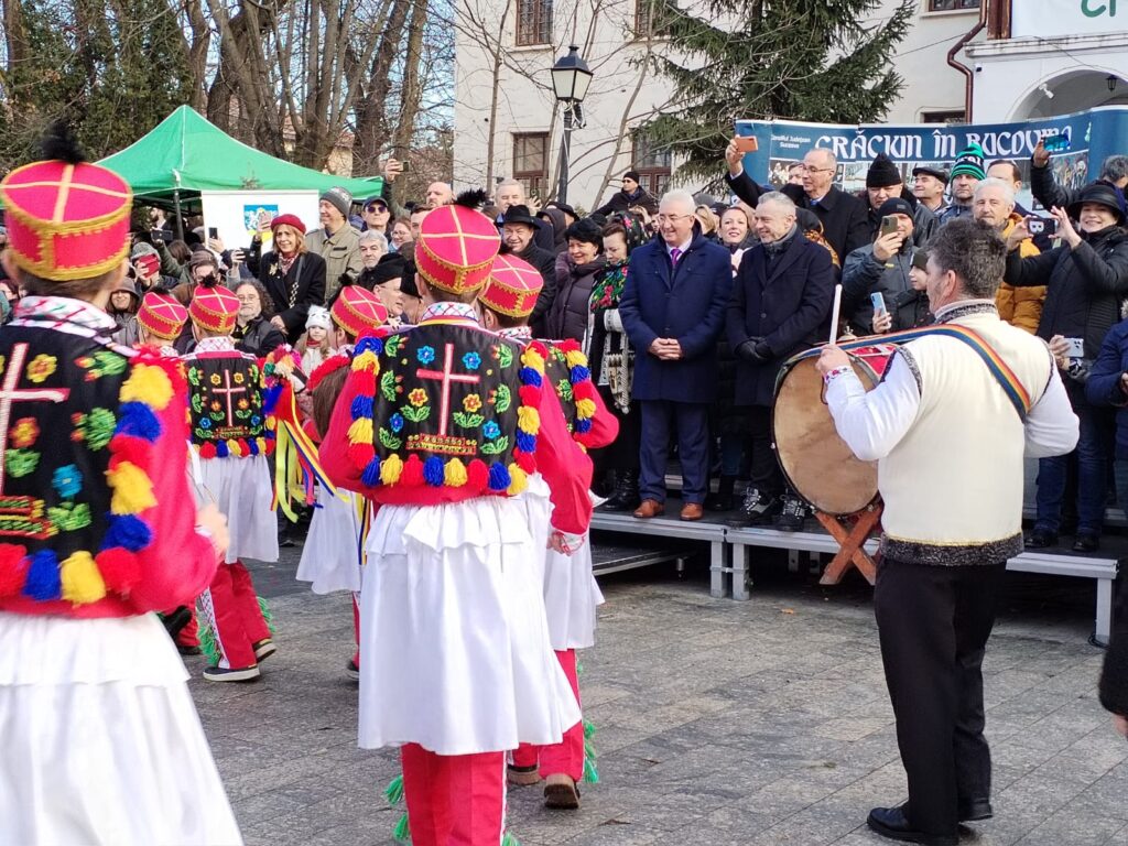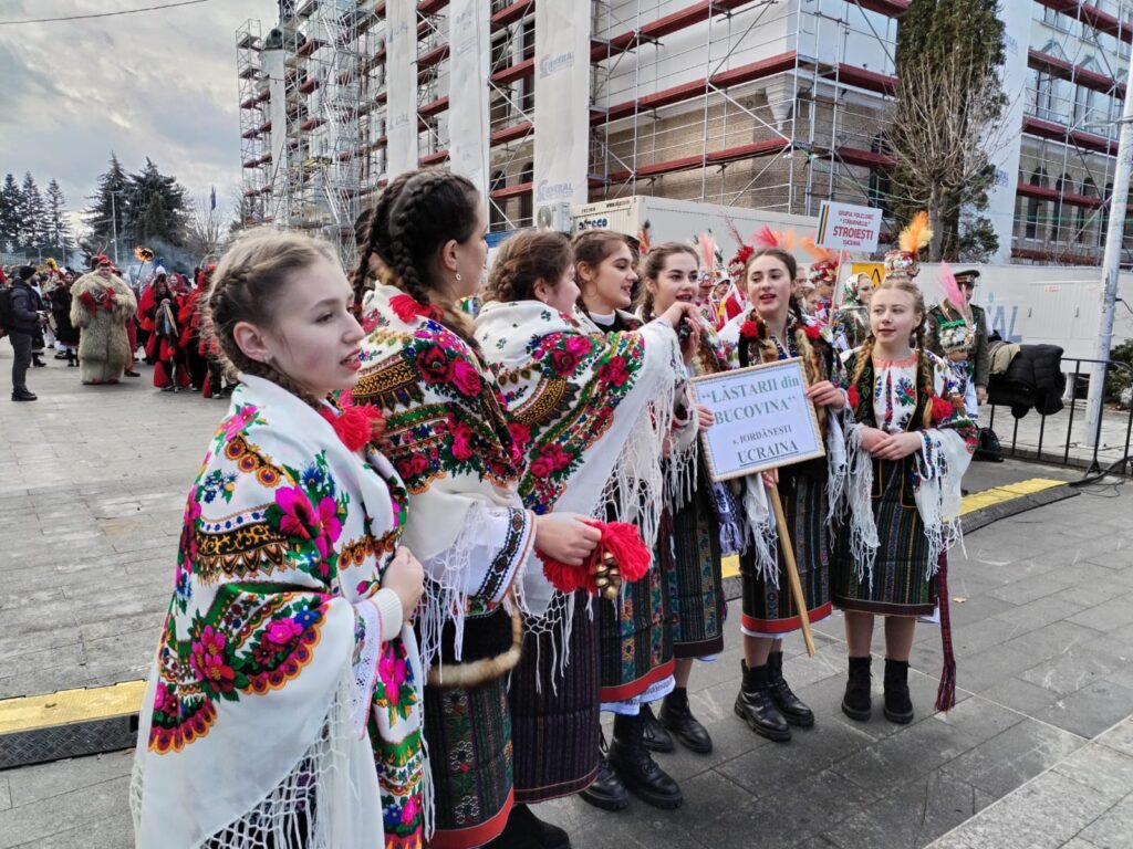 Mii de suceveni plasați pe ambele părți ale bulevardului principal au asistat la parada măștilor și a costumelor din cadrul Festivalului Internațional al Obiceiurilor de Iarnă, parte componentă a programului ”Crăciun în Bucovina” al Consiliului Județean. Coloana de artiști a plecat în jurul orei 11.00 de la Stațiunea de Cercetări Agricole și s-a oprit în centrul municipiului Suceava. Mii de suceveni au asistat la spectacolul de datini și obiceiuri oferit de 30 de grupuri de urători și mascați de toate vîrstele, care au venit din tot județul, dar și din județul Botoșani și din Ucraina. La spectacol au asistat și oficialități locale în frunte cu președintele Consiliului Județean, Gheorghe Flutur, și cu primarul Ion Lungu. Cu un clopot într-o mînă și cu un microfon în cealaltă, domnul Flutur a prezentat o urătură proprie, care s-a încheiat astfel: ”Cît mai este Bucovina,/ Cît de Pașți vine Lumina,/ Cît sînt urători vă spun,/ Că sîntem pe drumul bun/ Ia mai mînați măi!/ Lumea-ntreagă tre` să știe/ Și-n Bucovina să vie/ Hai române-n Bucovina/ Că aici e rădăcina!”.
