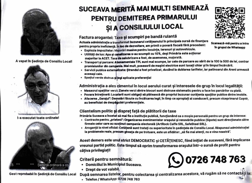 Domnul Covașă a adăugat: ”Încă o dată, o spunem foarte clar că nu avem o problemă cu acțiunea în sine, ci cu ceea ce înseamnă protecția datelor sucevenilor care completează aceste tabele. Orice fel de acțiune democratică este binevenită în Suceava, însă asta nu înseamnă că trebuie să ne scadă vigilența atunci cînd dăm toate datele noastre personale. De asta cred că fiecare sucevean care va semna această listă trebuie să se gîndească ce se va întîmpla cu datele personale atunci cînd aceste liste vor ajunge la inițiatori, pe care nu îi cunoaștem foarte clar, pentru că nu sînt asumați în totalitate și nu știm ce etape au parcurs în vederea demarării unei astfel de acțiuni. Însă, sucevenii trebuie să știe că aceste tabele cu datele lor personale ajung să fie stocate undeva. Nu știm unde, nu știm cum, în ce condiții. Știm că doar în cazul în care acestea vor fi scanate, fotografiate, ele pot deveni foarte ușor publice. Iar dacă aceasta este asumarea fiecărui semnatar nu avem nici un fel de obiecție de făcut. Doar că încercăm să îi avertizăm pe oameni să fie atenți unde își dau datele personale, pentru că cei care strîng aceste date vor avea adresele, numerele de telefon și toate celelalte date solicitate”.