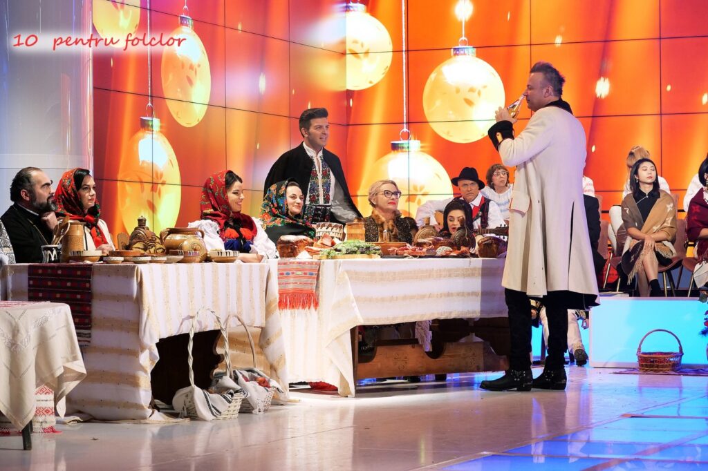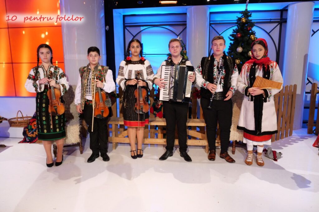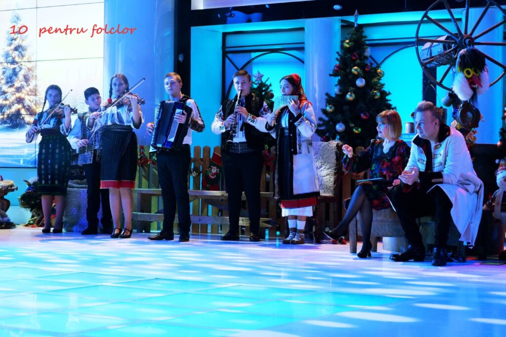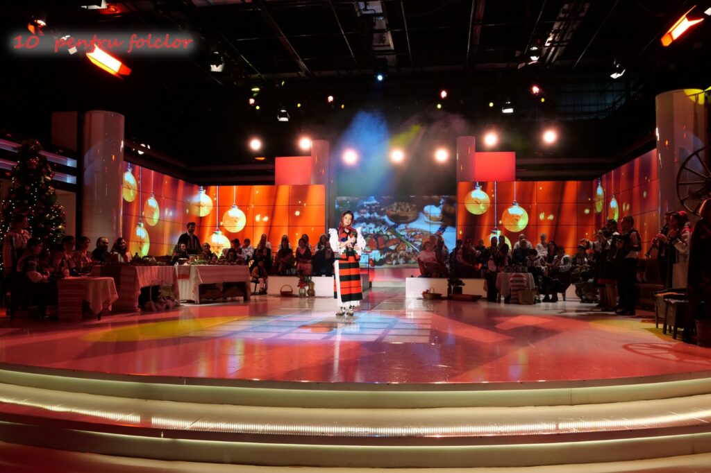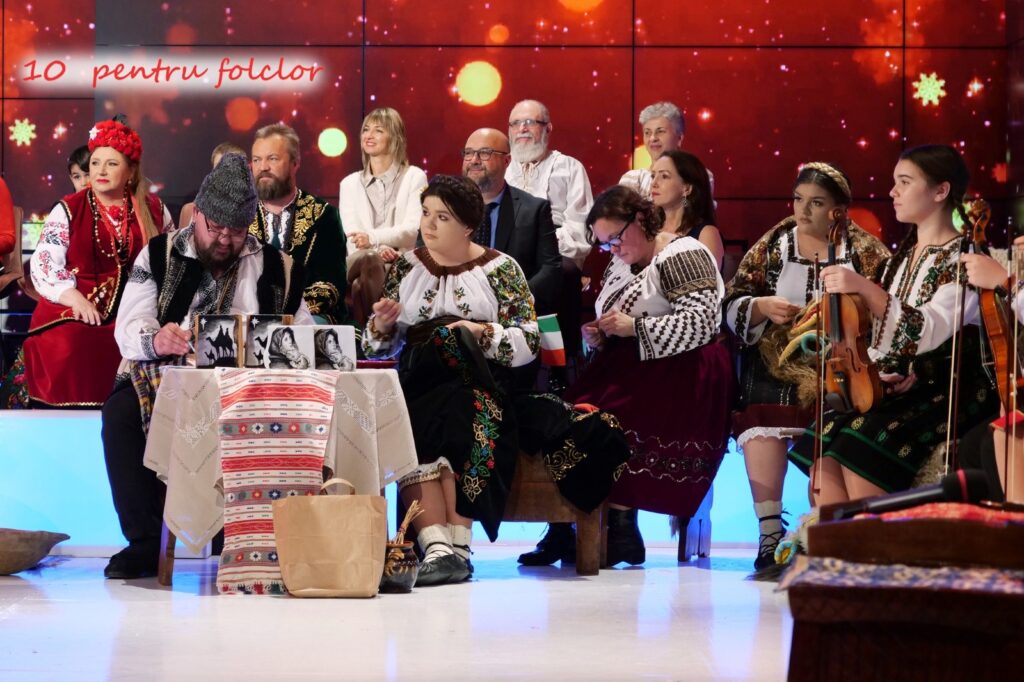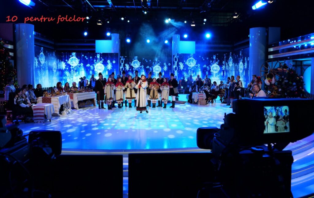 Artiștii suceveni au plecat la București pentru filmări pe 12 decembrie și s-au întors în aceeași zi. Zîna Bîrsan i-a mulțumit și directorului Școlii Populare de Artă ”Ciprian Porumbescu”, Ionică Băițan, pentru că a fost de acord ca o parte din Taraful ”Bucovina” să participe la emisiunea de la televiziunea publică. Interpreta Viorica Macovei a adus Ansamblul ”Codrii Neamțului” și încă 20 de persoane de la Neamț. Zîna Bîrsan a mai spus că preparatele de post ale preotului Mihai Cobziuc au fost foarte apreciate, acesta venind cu 12 preparate, așa cum e tradiția la Dărmănești. Mihaela Zîna Bîrsan a adăugat: ”Am avut alături de noi și partea de meșteșuguri. A fost familia Seserman de la Cajvana, tatăl picta icoane, mama a cusut, fetele au pictat globuri pe sticlă și am avut-o pe doamna preoteasă Tamara Bujorean de la Bosanci. Este o persoană deosebită și pentru mine e o legătură directă cu Bosanciul. A fost prima școală din mediul rural care a preluat opționalul de folclor. Au venit și au confecționat în direct trăistuțe. Au venit elevi împreună cu doamna Tamara Bujorean și cu doamna profesoară Angela Brahariu, ambele de la Școala Gimnazială din Bosanci, și împreună cu elevele au arătat ce fac ele în cadrul opționalului de folclor”. Filmările erau programate pentru marți, 12 decembrie, de la ora 10.00, dar din cauza unui blocaj în trafic la Rîmnicu Sărat acestea au început cu trei ore mai tîrziu. Emisiunea este una cu public. La TVR 2 a fost și Loredana Ceică, inspector pentru arte în cadrul Inspectoratului Școlar Suceava, care face și ea parte din echipa ”10 pentru folclor”. Ancuța Corlățan a fost în platou însoțită de băieții ei, Vlad și Ștefan, și au interpretat o colindă.