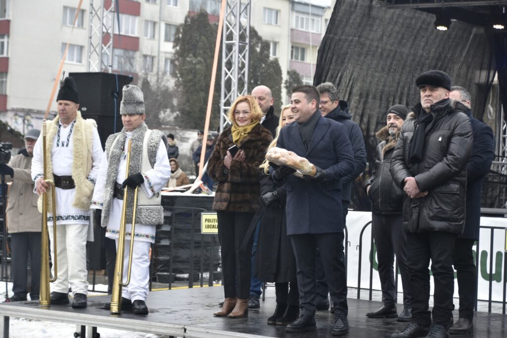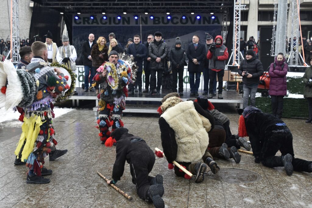 Din partea autorităților au fost prezenți pe un podium jos care a fost amplasat în fața Casei Culturii președintele Consiliului Județean, Gheorghe Șoldan, deputata Mirela Adomnicăi, primarul de Suceava, Vasile Rîmbu, primarul de Șcheia, Cristi Burac, și primarul de la Cornu Luncii, Gheorghe Fron. Oficialitățile le-au oferit colaci unora dintre urători.
