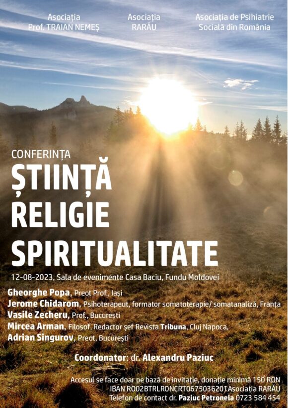- Tags: Asociația de Psihiatrie Socială din RomâniaAsociația „Rarău”dr. Alexandru Paziucreligiespiritualitate”„Știință