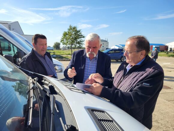 6 microbuze din lotul de 26 au fost predate, astăzi, la Centrul Economic Bucovina, primarilor. Alte16 microbuze fuseseră predate pe 13 septembrie.