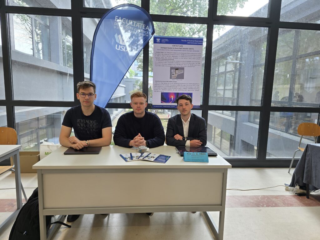 Echipa universității sucevene a prezentat proiectul ContactSafe – Intelligent System for Early Fault Detection. Prototipul realizat reprezintă o soluție ingenioasă pentru a identifica problemele de contact în sistemele electrice.