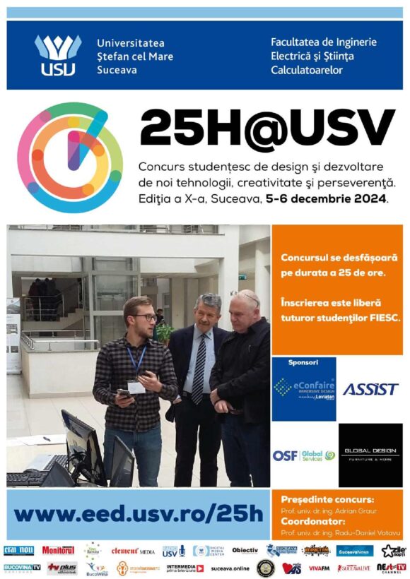 Facultatea de Inginerie Electrică și Știința Calculatoarelor din cadrul Universității „Ștefan cel Mare” din Suceava organizează, astăzi și mîine, cea de-a X-a ediție a concursului „25 de ore la USV”, care este deschis tuturor studenților înscriși la studii de licență și masterat.