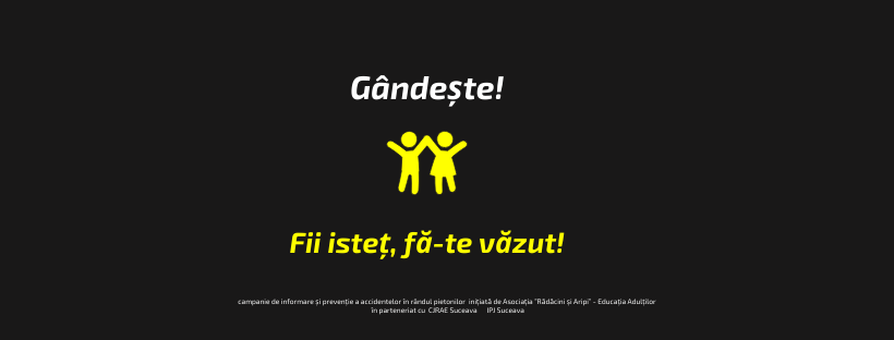 Centrul Județean de Resurse și Asistență Educațională Suceava, în parteneriat cu Inspectoratul Județean de Poliție Suceava și Asociația ”Visuri pentru comunitate” va derula în anul școlar 2024-2025 a II-a ediție a programului ”Fii isteț, fă-te văzut!”. Scopul proiectului este de a dezvolta aptitudini pentru viață prin creșterea gradului de conștientizare a necesității respectării normelor de siguranță în deplasarea pe drumurile publice, în calitate de pietoni. În acest sens, beneficiarii vor participa la ateliere practice, dezbateri și concursuri pe teme de educație rutieră și dezvoltare personală.