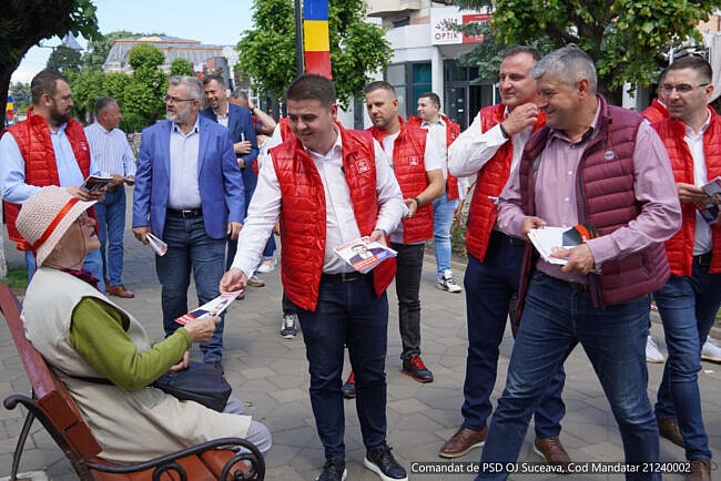 Candidatul PSD la președinția Consiliului Județean, Gheorghe Șoldan, a fost vineri, 31 mai, în mijlocul fălticenenilor alături de primarul Cătălin Coman și de alți colegi din PSD.