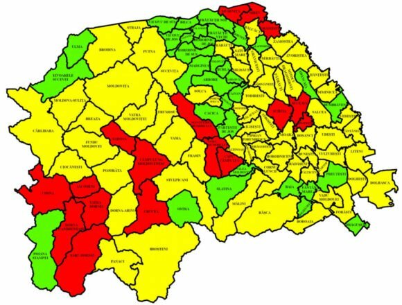 În județul Suceava s-au raportat 75 de cazuri noi de coronavirus, cu nouă în minus în comparație cu ziua anterioară. Au fost prelucrate 1.153 de teste. Numărul cazurilor active a scăzut de la 503 la 476, iar incidența s-a redus de la 2,50 la 2,21 la mia de locuitori. La nivelul județului, din totalul de 114 localități 17 sînt în „zona roșie” COVID, 64 în „zona galbenă” și 33 în „zona verde”. În municipiul Suceava sînt 151 de cazuri în evoluție, cu două mai puține față de raportarea anterioară, iar incidența s-a diminuat de la 4,76 la 4,23. Printre localitățile aflate în „zona roșie” se mai numără Șcheia, cu 4,51, Vatra Dornei, cu 4,30, Ipotești, cu 4,28, Cîmpulung, cu 4,12, Siret, cu 3,45, și Gura Humorului, cu 3,13. Municipiile Rădăuțiul și Fălticeni sînt în „zona galbenă”, cu rate de infectare de 1,36 și, respectiv, 2,62. Între ultimele două raportări, un sucevean a murit ca urmare a infecției cu COVID-19. Persoana decedată era din Liteni. Pe de altă parte, astăzi dimineață, în spitalele sucevene se aflau internate 140 de persoane diagnosticate cu COVID, din care 3 copii și 26 suspecte de infecția cu noul coronavirus. La nivelul județului erau 347 de locuri libere COVID, din care 38 pentru copii și 40 pentru zona tampon.