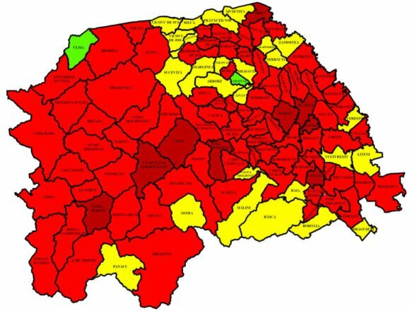 86 din cele 114 localități, în roșu. Rata de infectare în municipiul Suceava a scăzut la 14,25 la mie. 229 de paturi de spital sînt libere