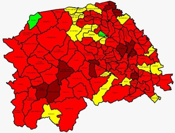 93 din cele 114 localități sucevene, în roșu. Rata de infectare în municipiul Suceava este de 15,44 la mie. Cea mai mare rată de infectare, la Șcheia – 16,49. 234 de paturi de spital, libere