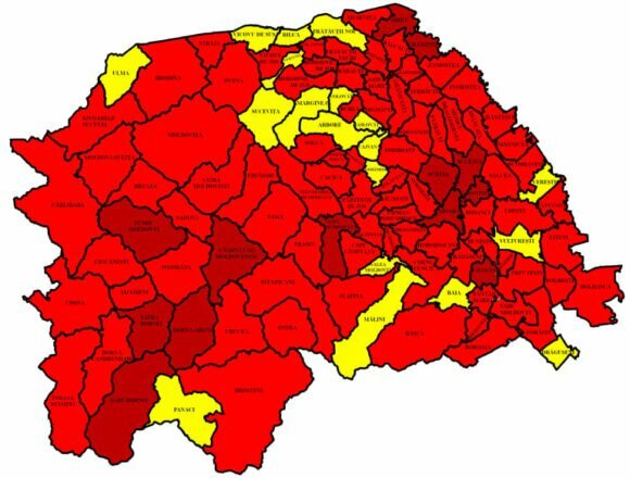 95 din cele 114 localități sucevene, în roșu. Rata de infectare în municipiul Suceava, 16,05 la mie. Cea mai mare rată de infectare, la Șcheia – 17,97. 233 de paturi de spital, libere