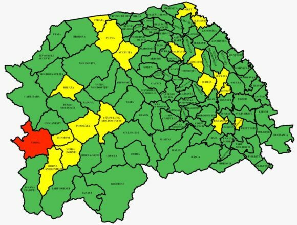 În județul Suceava au fost raportate 39 de cazuri noi de coronavirus, cu 17 în plus față de ziua anterioară. Au fost efectuate 1.164 de teste. Numărul cazurilor active a scăzut de la 236 la 209, iar incidența s-a redus de la 0,91 la 0,86 la mia de locuitori. Municipiul Suceava se menține în „zona galbenă”, cu o rată de infectare de 1,87. Dintre municipii, în „galben” mai sînt Cîmpulungul, cu 1,66, și Vatra Dornei, cu 1,48. Rădăuțiul și Fălticeniul se află în „zona verde”, cu incidențe de 0,71 și, respectiv, 0,74. În „roșu” a rămas doar comuna Coșna, cu o incidență de 5,42. Din cele 114 localități, 57 nu au nici un caz activ de COVID, 30 au cîte un caz, 20 sub cinci și cinci sub zece. Două localități au peste zece cazuri în evoluție, fiind vorba de Suceava, cu 88, și Fălticeni, cu 12. În altă ordine de idei, astăzi dimineață, în spitalele sucevene se aflau internate 56 de persoane diagnosticate cu COVID, din care șapte copii și 26 suspecte de infecția cu noul coronavirus. La nivelul județului erau 259 de locuri libere COVID, din care 24 pentru copii și 40 pentru zona tampon.
