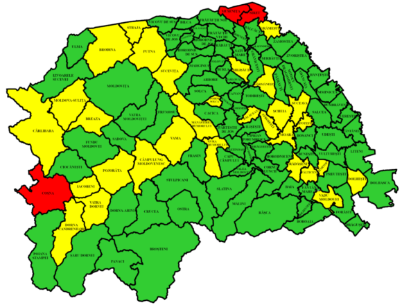 Rata de infectare în județul Suceava, scădere de la 1,21 la 1,12 la mie. Doar 3 din cel 114 localități mai sînt în roșu. Sînt 266 de paturi de spital libere