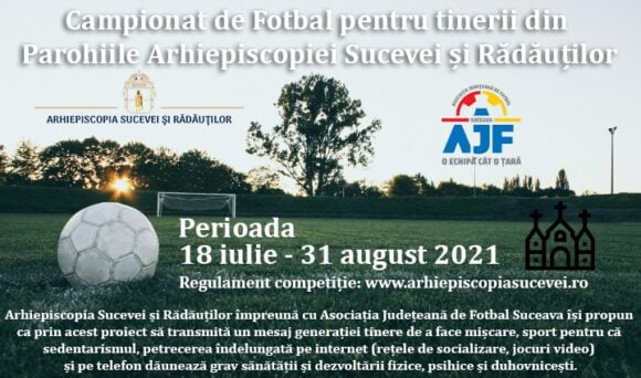 În curînd va debuta prima ediție a Campionatului de fotbal pentru tinerii din Parohiile Arhiepiscopiei Sucevei și Rădăuților. În competiția organizată de Arhiepiscopie împreună cu Asociația Județeană de Fotbal, condusă de Ciprian Anton, s-au înscris 48 de echipe. Campionatul de fotbal se va desfășura între 18 iulie și 31 august, iar regulamentul poate fi consultat pe site-ul Arhiepiscopiei. În Regulament se specifică, printre altele: „Acest campionat se dorește a fi fair-play. Se interzic înjurăturile, jignirile, nervii pe teren și faulturile grosolane care pun în pericol sănătatea și viața celorlalți jucători”. Arhiepiscopia Sucevei și Rădăuților și Asociația Județeană de Fotbal își propun ca prin acest proiect să transmită un mesaj generației tinere de a face mișcare pentru că sedentarismul, petrecerea îndelungată a timpului pe internet și pe telefon dăunează grav sănătății și dezvoltării fizice, psihice și duhovnicești”.