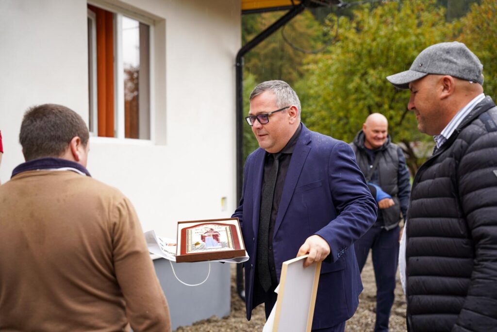 A mai spus domnul Șoldan: ”Le mulțumesc, încă o dată, tuturor celor care nu au rămas indiferenți și au ales să transforme durerea în speranță. Unele locuințe sunt deja finalizate, iar oamenii au început să se mute în ele. Așa cum s-a întâmplat și în această după-amiază, când s-a scris încă o poveste despre puterea solidarității. Constantin Luncașu are acum un nou cămin, o locuință complet mobilată și pregătită pentru un nou început. O casă ridicată în doar o lună și jumătate, prin voluntariat, de comunitatea din comuna Slatina, în frunte cu primarul Vlăduț Gherman, și cu sprijinul unor oameni cu suflet mare. Este mai mult decât un acoperiș deasupra capului. Este dovada că, atunci când oamenii își unesc forțele, niciun necaz nu ne poate doborî. În această după-amiază a avut loc slujba de sfințire a noii case, un moment plin de emoție și recunoștință. <Am simțit că nu suntem singuri>, a spus părintele satului”.