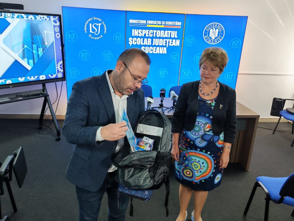 Ghiozdane cu rechizite pentru copiii din localitățile sucevene sinistrate, în cadrul campaniei Inspectoratului Școlar, ”Fii solidar! Împreună redăm speranța!”