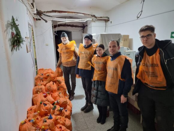 A continuat artistul plastic Mihai Pînzaru – PIM: ”Există un program în care este implicat Institutul Bucovina. Există în perioada asta o achiziționare de bunuri, eu știu, alimentare, clasice, care sînt oferite de retaileri, de anumiți agenți economici care au magazine, au depozite de alimente. Alimente de bază însemnînd ulei, zahăr, făină, conserve și fructe. Voluntarii de la Institutul Bucovina au selectat, pentru că una e să-ți ofere cineva alimente și alta e să le verifici calitatea lor. Te duci să faci oferte din astea creștinești, și să nu fie alimente de calitate superioară. Așa cum îți cumperi pentru tine, așa și cînd faci cadouri cuiva, nu faci în bătaie de joc. Ei, asta a fost munca, au selectat cantități foarte mari de alimente acești voluntari. O parte din aceste alimente au fost duse luni seară la Solca, la acel așezămînt pentru oameni în vîrstă. Am fost cîțiva voluntari, frații Lungu, o studentă, eu și cu Vasi Gafiuc. Au fost cărate cu o dubă 150 de pachete a cîte șase kilograme fiecare. Plus portocale la discreție, cum se spune. Au fost depozitate aceste pachete acolo, în zona de magazie a acestui așezămînt”.