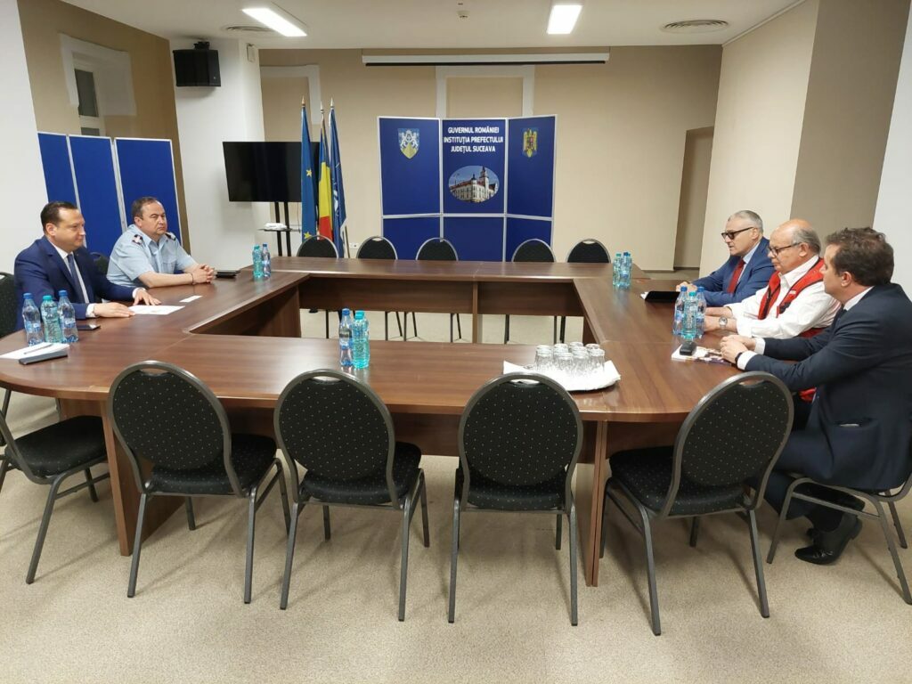 Județul Suceava va colabora cu Organizația <Ordinul Suveran de Malta> pentru ajutorarea poporului ucrainean. Anunțul a fost făcut de prefectul Alexandru Moldovan, după o întîlnire pe care a avut-o, astăzi, la sediul instituției, cu reprezentanți ai organizației. Prefectul a afirmat: „Am primit o delegație a Ordinului Suveran de Malta. Discuțiile purtate cu Excelența Sa, Roberto Musneci, ambasadorul Ordinului în România, și cu Gerardo Solaro del Borgo, președintele fundației italiene CISOM, au fost axate pe identificarea celor mai bune modalități de cooperare între autoritățile din județul Suceava și Organizația Ordinului Suveran de Malta, în contextul acordării ajutoarelor umanitare către poporul ucrainean”. La discuții a asistat și șeful ISU <Bucovina>, colonelul Costică Ghiață.