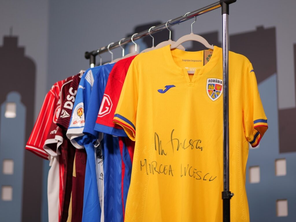 Mai sînt licitate tricouri cu semnăturile jucătorilor de la Dinamo București, de la FCSB, de la Universitatea Craiova sau de la Rapid.