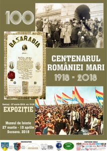 Pe 27 martie, la ora 18.30, la Suceava, Alba Iulia și Chișinău va începe vernisajul expoziției „Centenarul României Mari”. Expoziția a fost realizată de Muzeul Bucovinei în colaborare cu Muzeul Național al Unirii din Alba Iulia și Muzeul Național de Istorie al Moldovei din Chișinău. Muzeul Bucovinei a transmis că în cadrul vernisajului vor avea loc transmisiuni simultane din cele trei locaţii de organizare, la Suceava fiind vorba despre Muzeul de Istorie. Evenimentul îşi doreşte să reprezinte un semnal simbolic de unitate ale provinciilor istorice care în 1918 s-au unit cu România. Expoziția dedicată Marii Unirii va putea fi vizionată pînă pe 10 aprilie.